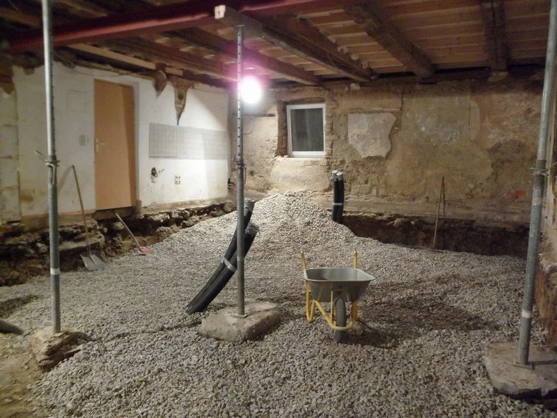 ausgeschachtet, Fundamente neu gesetzt, Bodenplatten gegossen,
