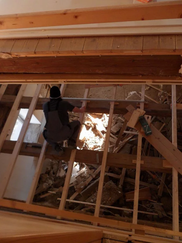 das Dach. Das zukünftige Studio wurde einen Meter tief