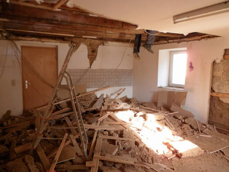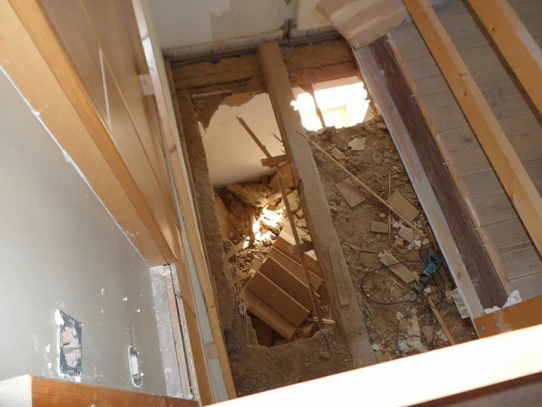 Wände, Decken und Böden entfernt, drei Etagen offen bis unter
